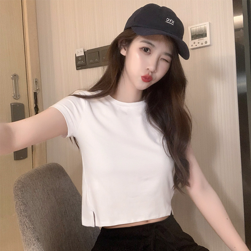 白色短款t恤女夏高腰露脐装短袖设计感小众心机上衣网红ins超火潮热门设计联盟服务商