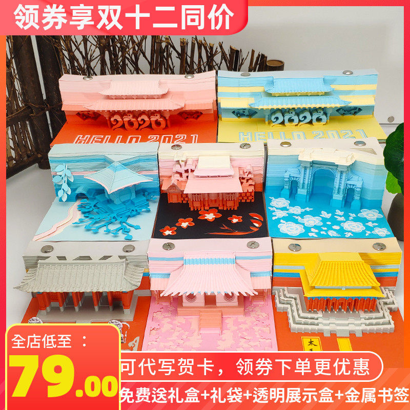 3D立体纸雕手撕网红便签纸模型便利贴日本建筑渐变故宫古风清水寺热门设计联盟服务商