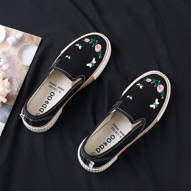 2021年夏季款浅口手绘小白鞋懒人一脚蹬平底布鞋女休闲百搭鞋子热门设计联盟服务商