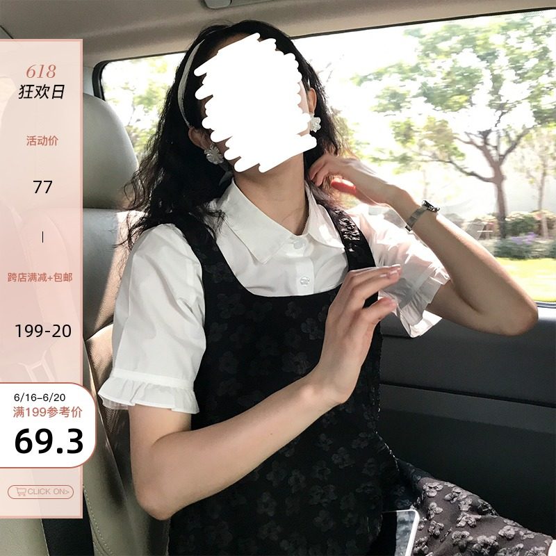 东日是个卷毛 法式木耳袖衬衫女设计感小众2021新款白色短袖衬衣热门设计联盟服务商