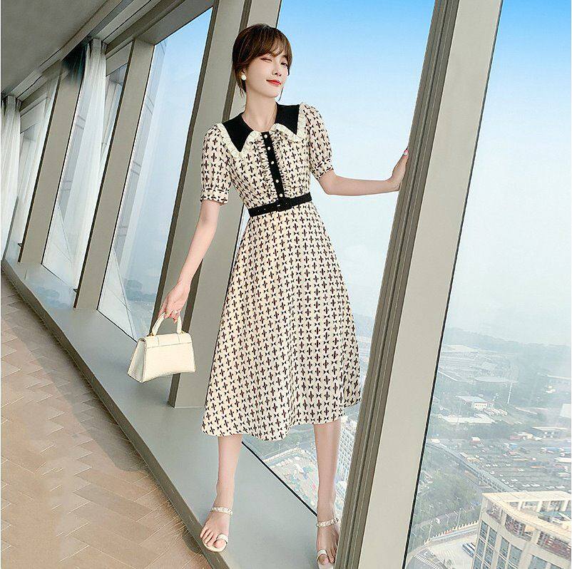 温柔坚果2021服饰翻领夏季小众法式风新款气质女装印花裙子连衣裙热门设计联盟服务商