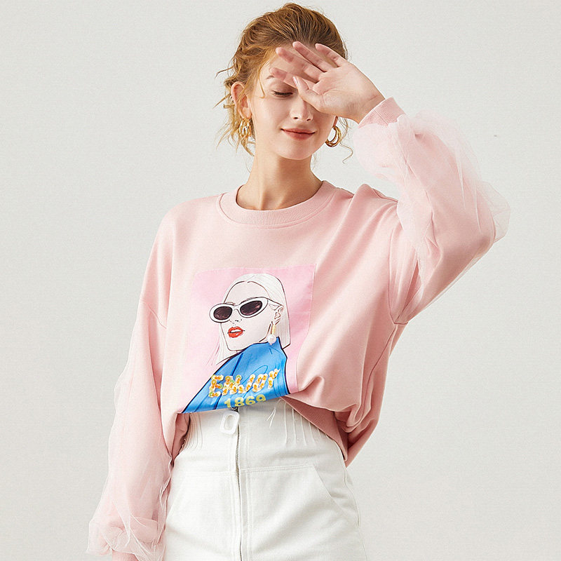 【特卖49】咏仕2020秋新款韩版时尚甜美贴图蕾丝拼接长袖卫衣热门设计联盟服务商