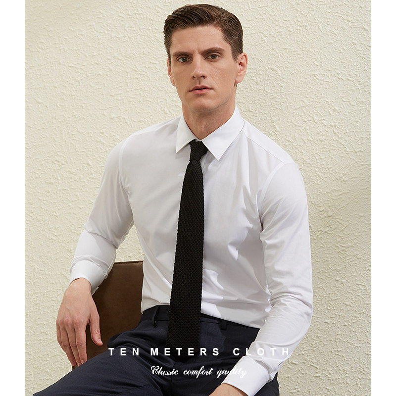 十米布白衬衫男长袖商务修身西装衬衣免烫抗皱职业正装上班白寸衫
