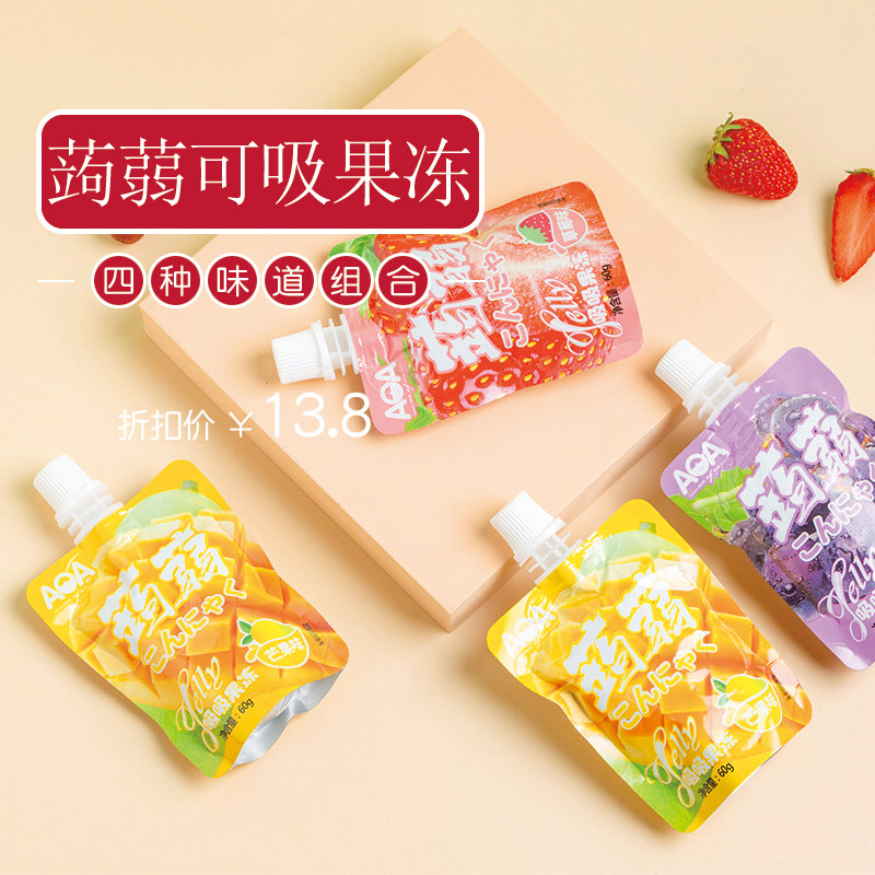 AOA蒟蒻吸吸果冻袋装果味儿童零食日式综合百香果味可吸魔芋布丁热门设计联盟服务商