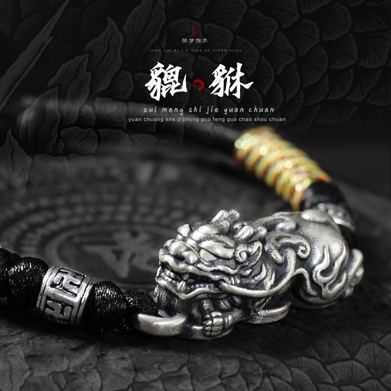 貔貅手链男潮男士纯银貔恘皮丘男生女手饰品编织ins小众设计手绳热门设计联盟服务商