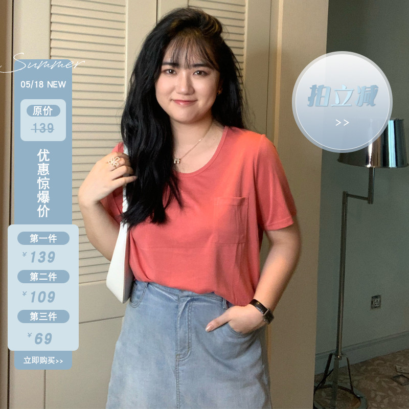 脚趾筋微胖mm真香醋酸T恤女夏季冰凉宽松显瘦贴袋设计短袖上衣热门设计联盟服务商